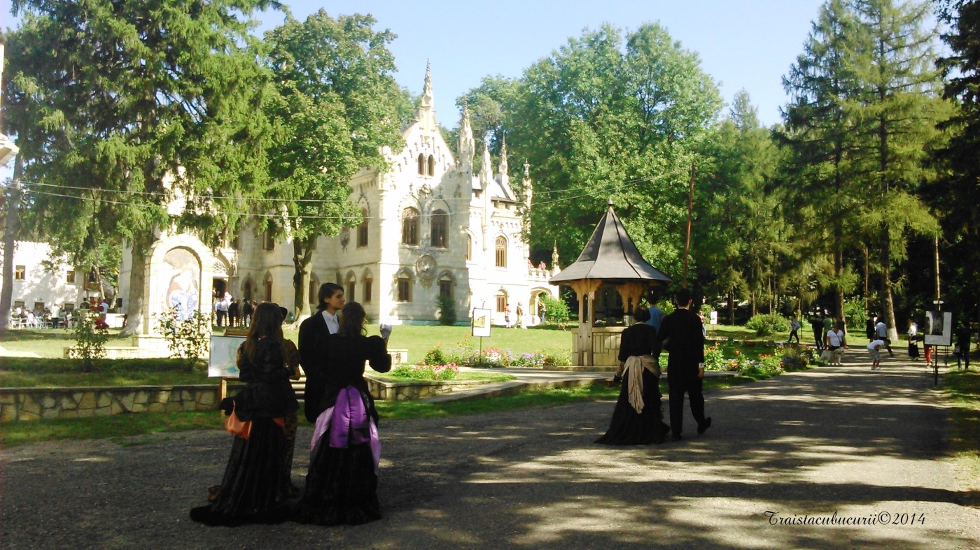 Drept pentru care ne-am bucurat cu mic, cu mare, cu căţel, cu pisică şi cu mult ştaif în curtea şi împădurimile locului. Cocoane cu rochiile lungi elegante foşnind prin iarbă, domni cu joben, necuvântătoare în dantele şi catifea rostind mai multe din priviri decât mulţi dintre noi, caleşti cu cai vânjoşi spre deliciul copiilor. Argintărie, porţelan şi fineţuri de demult.